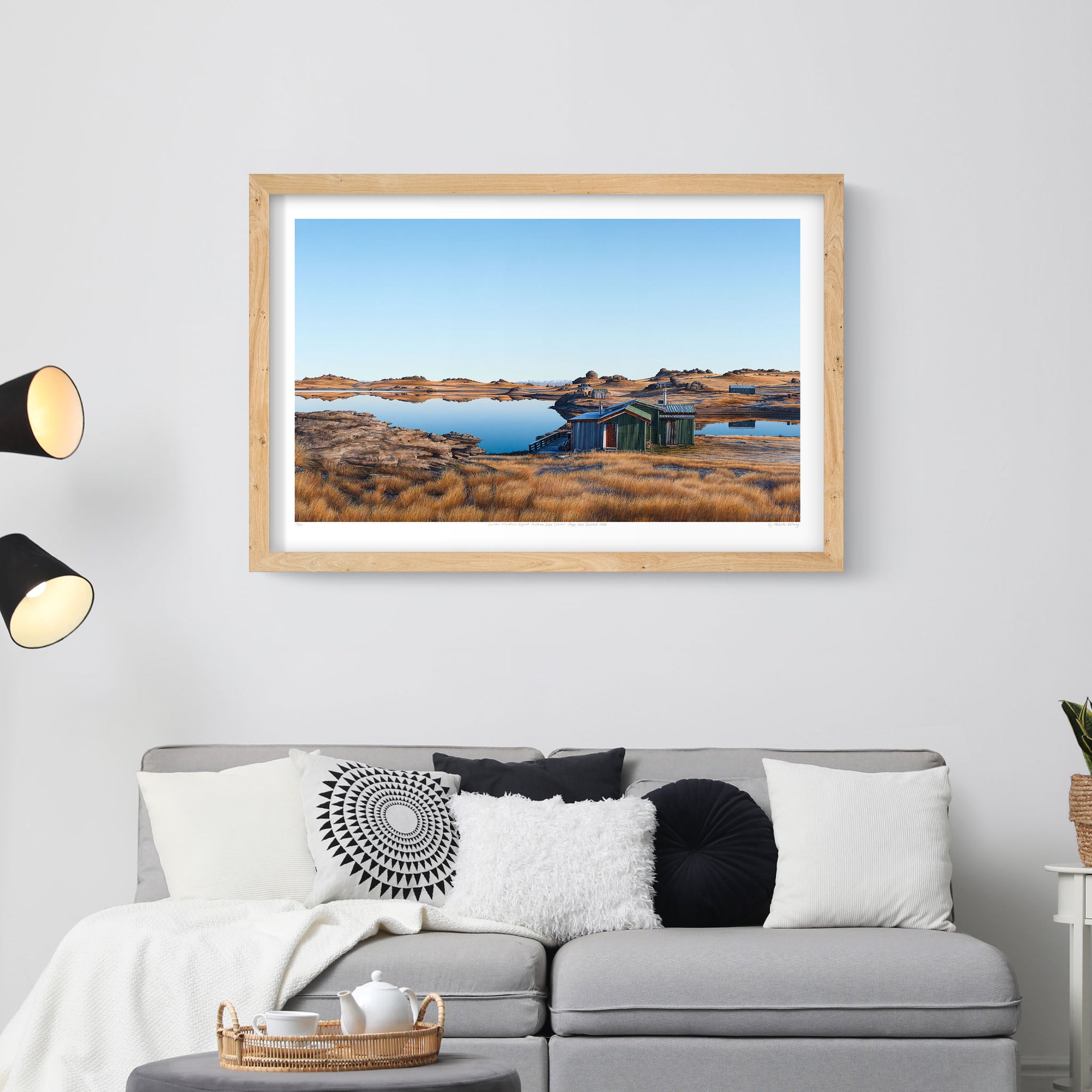 Here is the Travers River art print with the black frame in the 1000 x 714mm size looking very cool in a West Coast house. This print captures the iridescent turquoise and blues as the Travers River feeds into Lake Rotoiti in the Nelson Lakes National Park. Made with archival quality inks and on heavyweight papers, there are three sizes available to suit your space perfectly.
